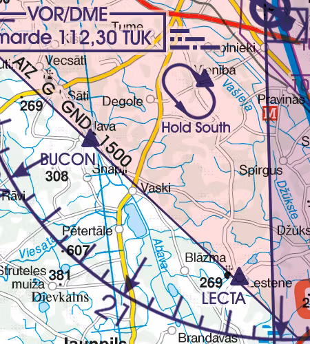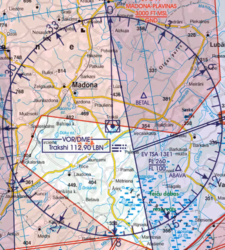 • Navigerings hjälpmedel med namn, frekvens och morse kod