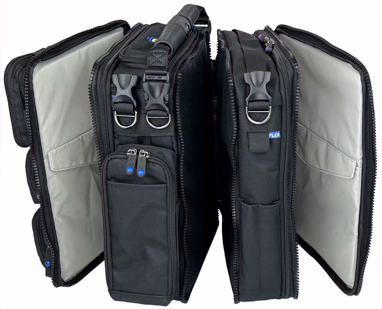 CS4: Next, comes the CS4 (4-inch Center Section), which is designed to hold two full sized aviation headsets. The CS4 comes with a divider shelf which serves to separate the compartment if necessary. You can instead fit 13” laptops or a small collection of documents (or both). (Many, but not all, 14" laptops will also fit. - But no 15" laptops will fit.) The CS4 has a really versatile dual-access feature. First, you get full top-access. You can unzip just the top of the bag to give access to your stuff right through the top of the bag. And then when you need, everything can also be accessed by unzipping the entire front panel all the way down to the bottom, giving access to the entire gray interior of the CS4. The Main Compartment of the CS4 has locking zipper sliders. The other key thing about the CS4 is that it has two FLEX-Mount Side Pocket stations, one on each side, for attaching the two included side pockets. You can, of course, also trade out the pockets any time you like later on.