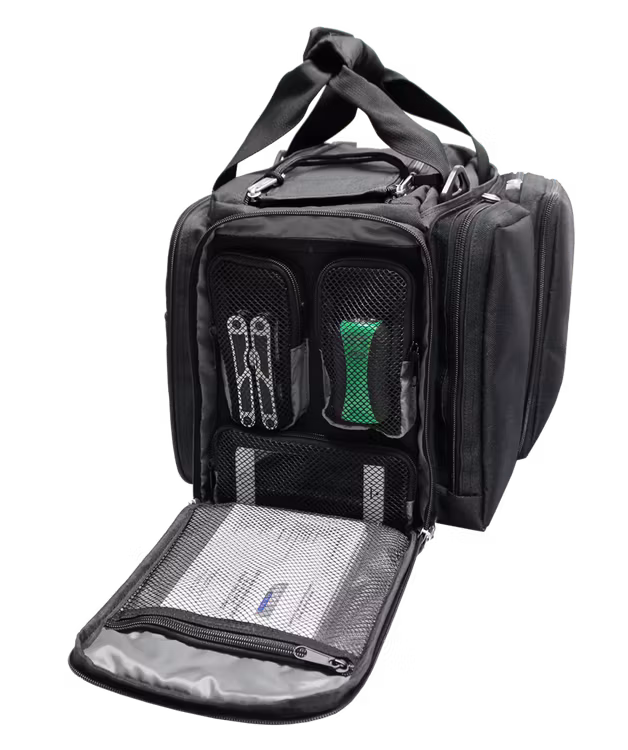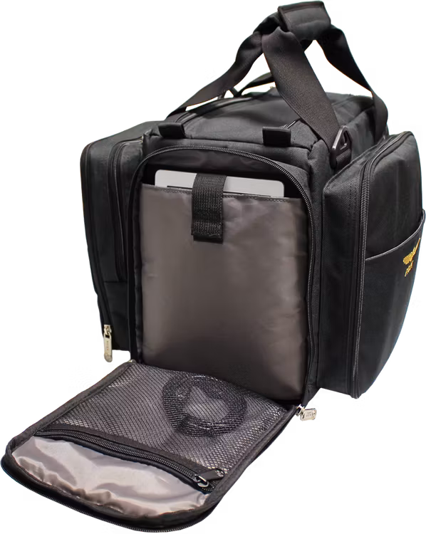 Väskan är tillverkad av högkvalitativ lätt nylonfiber, är helt vadderad och har en avtagbar förstärkt botten. Huvudfacket kan delas upp på olika sätt för att passa dina behov. För att förhindra att påsen blir smutsig placeras små stöd på undersidan.